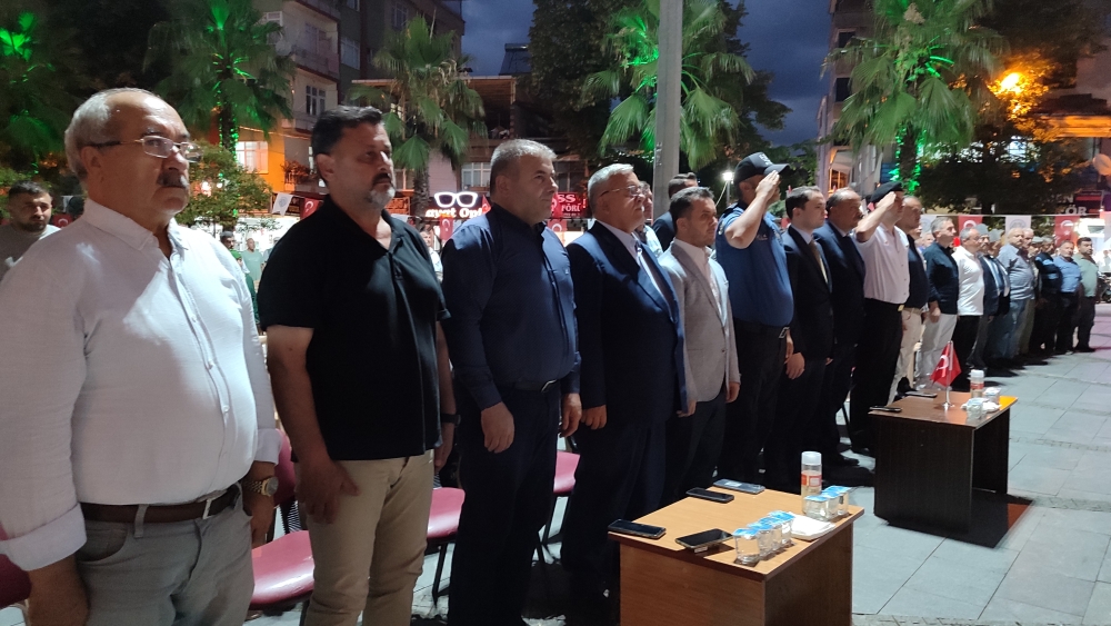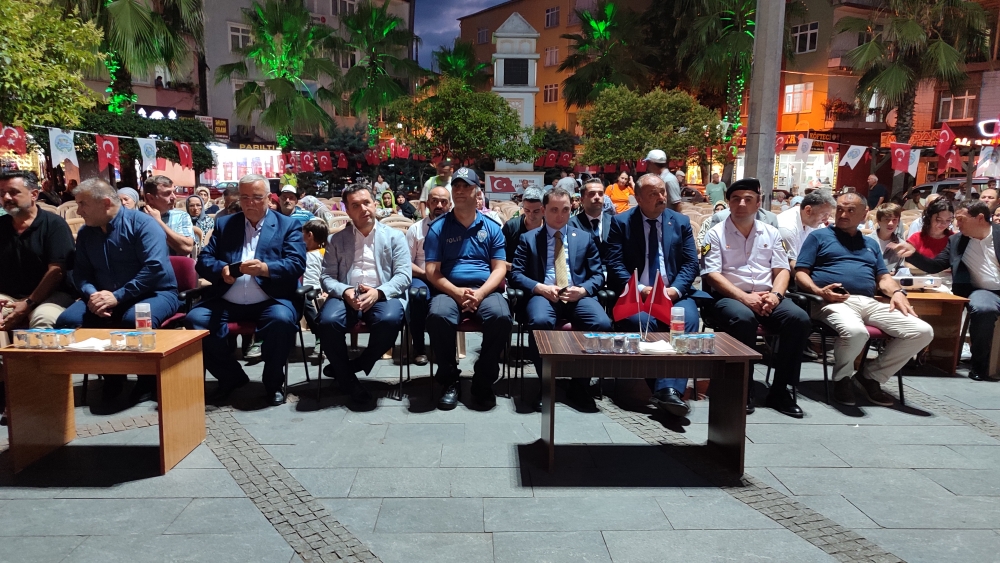 Programda konuşan Salıpazarı Kaymakamı Salih Başara,Uzun yıllar boyunca sinsi bir şekilde örgütlenerek, devletin her kademesine sızmış, dini değerleri istismar ederek büyümüş bir terör örgütü, 8 yıl önce bugün darbe girişiminde bulunmuştur. Bu örgüt, milletimizin cesaretiyle, devletine ve vatanına bağlılığıyla, o gece göstermiş olduğu fedakârlığıyla milletin zaferi karşısında bozguna uğratılmıştır.