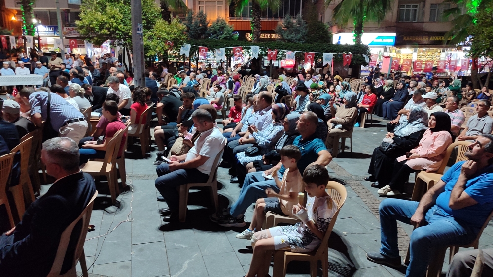 Belediye Başkanı Refaettin Karaca ise, “Bugün buraya Milletimizin demokrasi zaferini kutlamak; kalpleri iman ve ülke sevgisiyle dolu olarak Vatan, Millet, Bayrak, İstiklal ve diğer bütün mukaddes değerleri uğruna gözlerini kırpmadan canlarını feda eden Aziz Şehitlerimizi bir kez daha yâd etmek ve kahraman gazilerimize şükranlarımızı sunmak üzere bir araya gelmiş bulunuyoruz”dedi